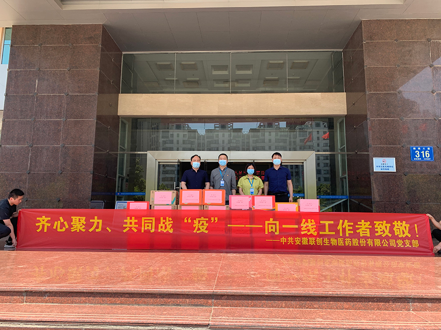 2022年5月6日,安徽聯(lián)創(chuàng)生物醫(yī)藥股份有限公司支部委員會(huì)向肥西經(jīng)開(kāi)區(qū)抗疫一線單位捐贈(zèng)物資,并向一直奮戰(zhàn)在新冠肺炎疫情防控一線的人員表達(dá)敬意和慰問(wèn)。